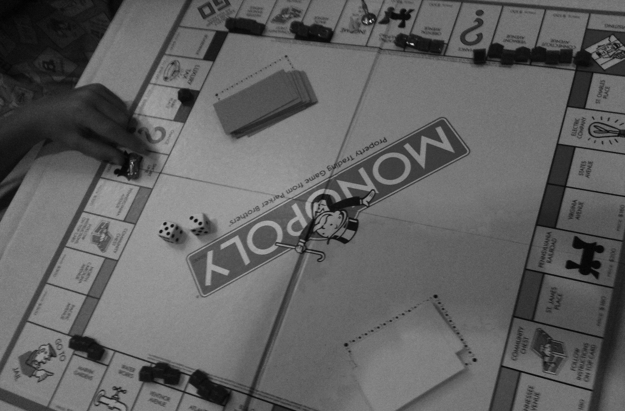 As I struggled to recall the rules of a game I hadn’t played more than twice since childhood, we rolled for highest score to go first. The kid won, and we were off, buying up properties, railroads and utilities as we landed on them. I had a bad streak of luck and had to go to jail twice, keeping my holdings to a minimum.