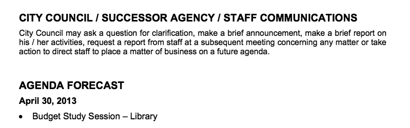 There is a City Council Study Session about the 2013/2014 budget on Tuesday, April 30 at the Fullerton Public Library. It isn’t on the City of Fullerton’s calendar anywhere where I can find it, but it is listed at the end of the agenda packet for the last city council meeting, so I am pretty sure it’s happening.