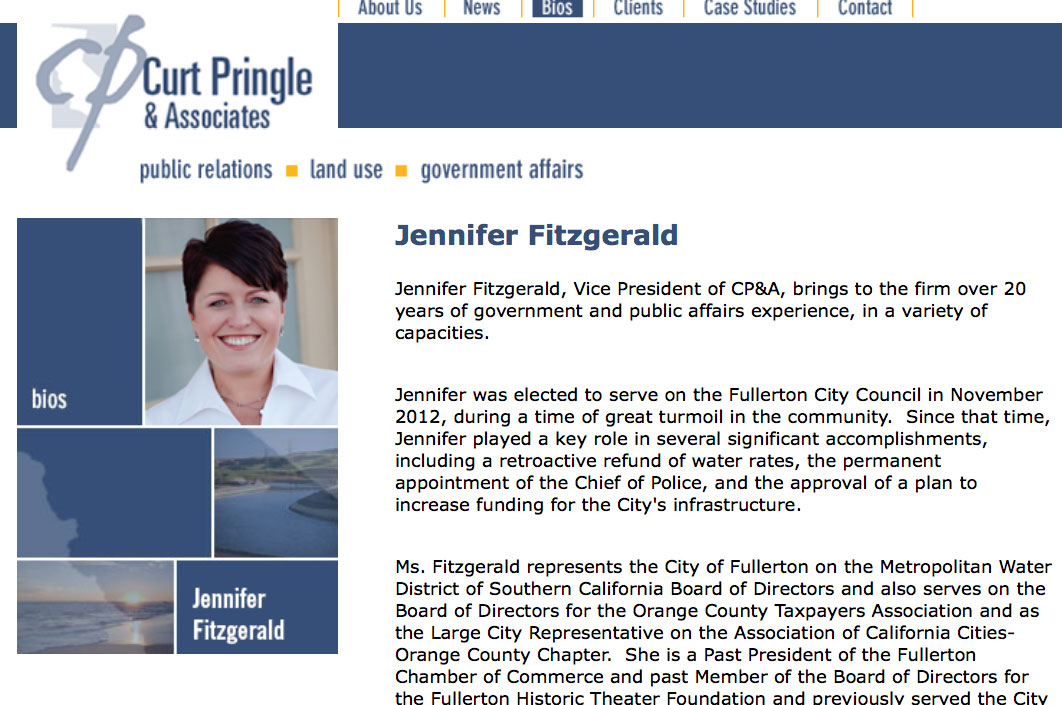 Barely five months into her tenure as Fullerton’s Director on the Board of the Metropolitan Water District of Southern California, Council member Jennifer Fitzgerald is giving up the hard-fought seat. Her recent acceptance of a VP position with the powerful Orange County public relations and land use firm Pringle & Associates creates a conflict of interest for her because the firm counts the MWD as one of its many clients.